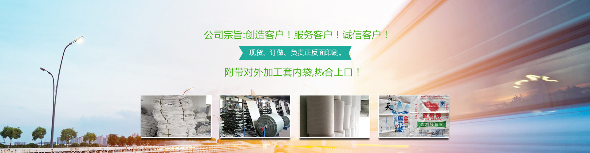 本公司常年生產: 編織袋、彩膜、食品袋、集裝袋、飼料袋、化肥袋、水泥袋、化工袋、普危包裝袋、坯布專用內袋、包皮、印染廠整裝專用包裝、有現貨、也訂做、負責正反面印刷。附帶對外加工套內袋,熱合上口!聯系人:王經理。